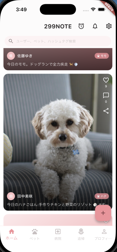 「技術で何ができるか」を問い続けた結果が、299noteです。ペットとの日常を記録・共有するSNS。見送った後も記憶を守るメモリアル機能。そして、その記録を活かして動物病院の診療品質と効率を高める仕組み。